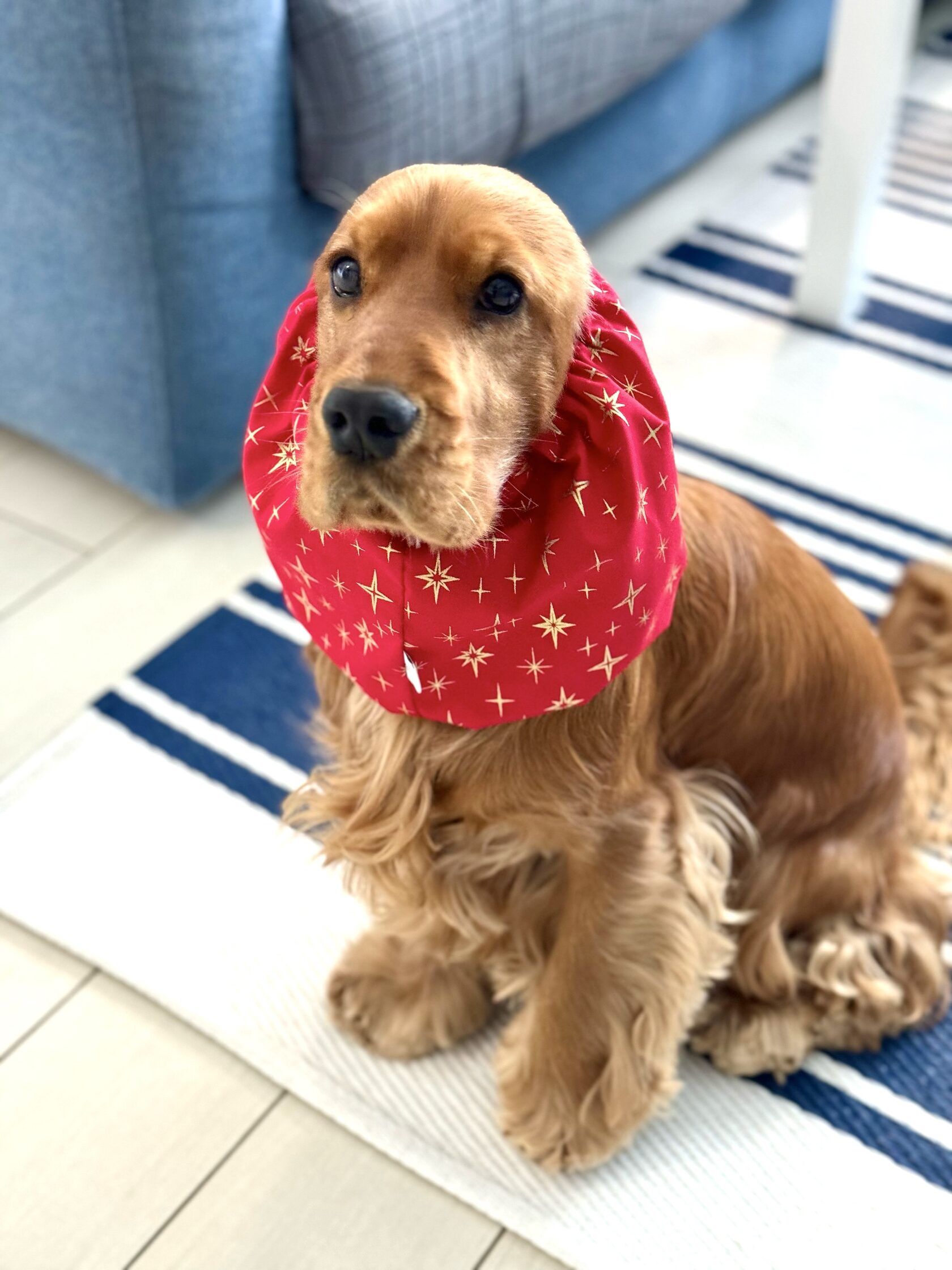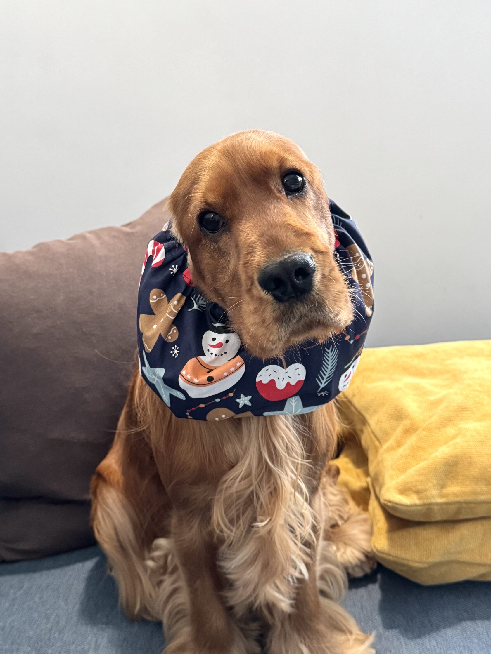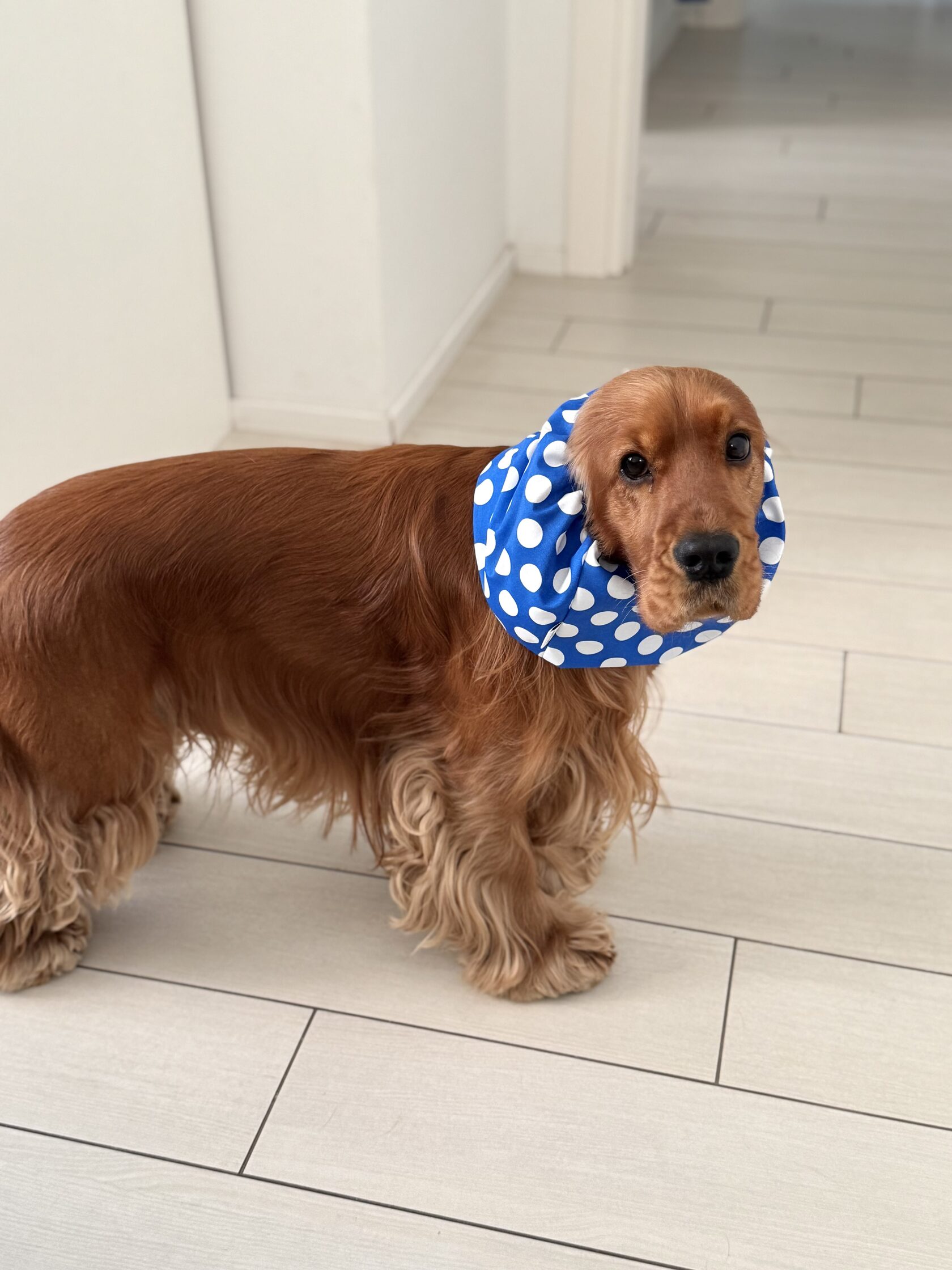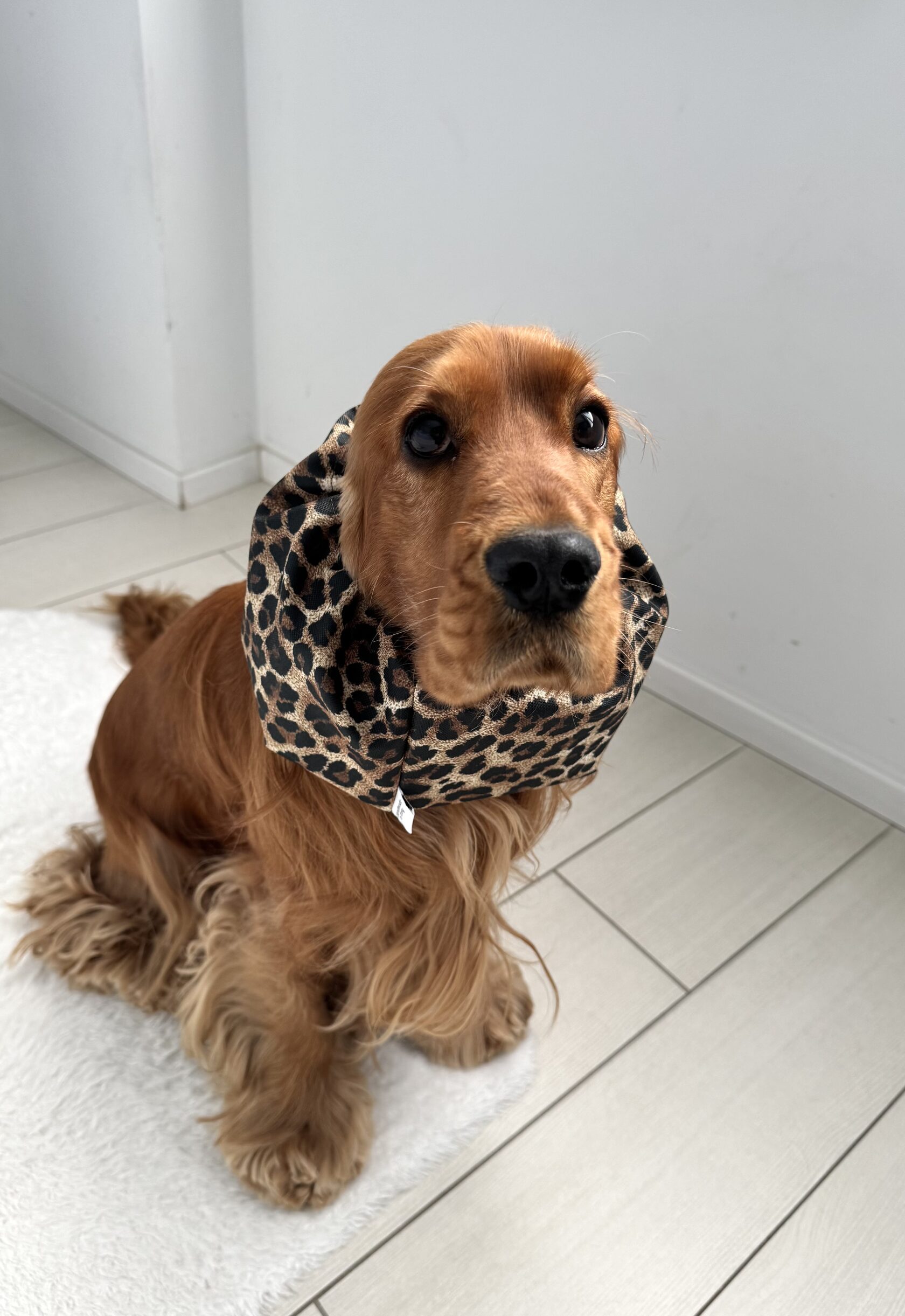 A dog snood is a stylish and practical accessory for our furry friends. These cozy and cute coverings are designed to keep your dog's ears and neck warm, especially in winter. And in summer snoods protect against grass seeds and help keep long ears clean and dry, making them perfect for breeds like Cocker Spaniels, Cavalier King Charles Spaniel, Basset Hounds and some other dogs with long ears.
