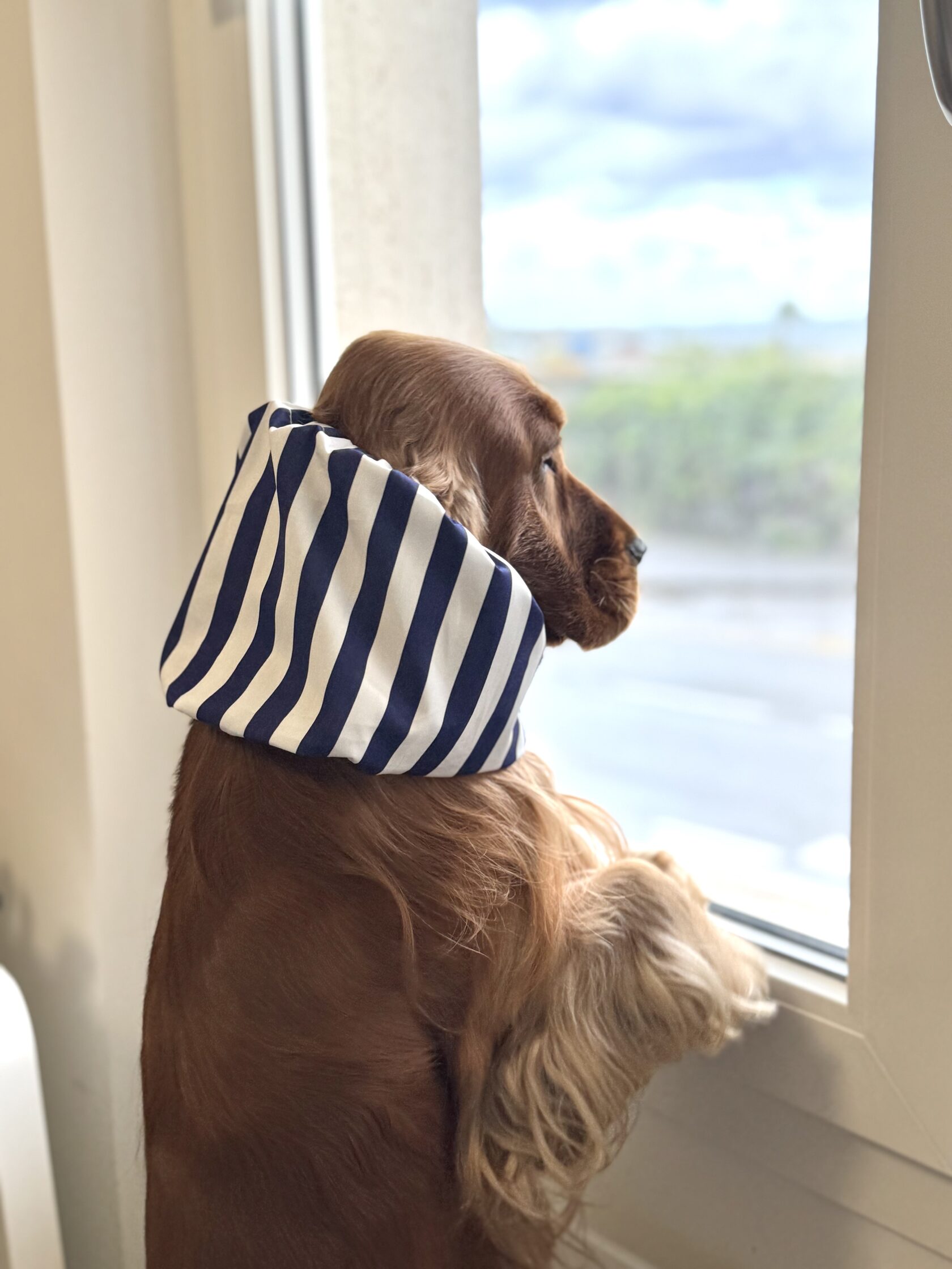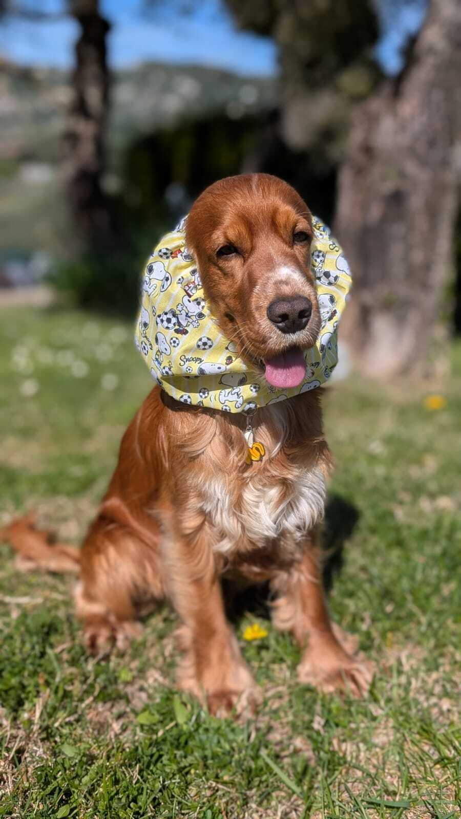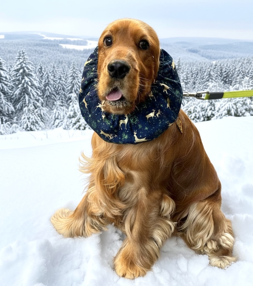 A dog snood is a stylish and practical accessory for our furry friends. These cozy and cute coverings are designed to keep your dog's ears and neck warm, especially in winter. And in summer snoods protect against grass seeds and help keep long ears clean and dry, making them perfect for breeds like Cocker Spaniels, Cavalier King Charles Spaniel, Basset Hounds and some other dogs with long ears.