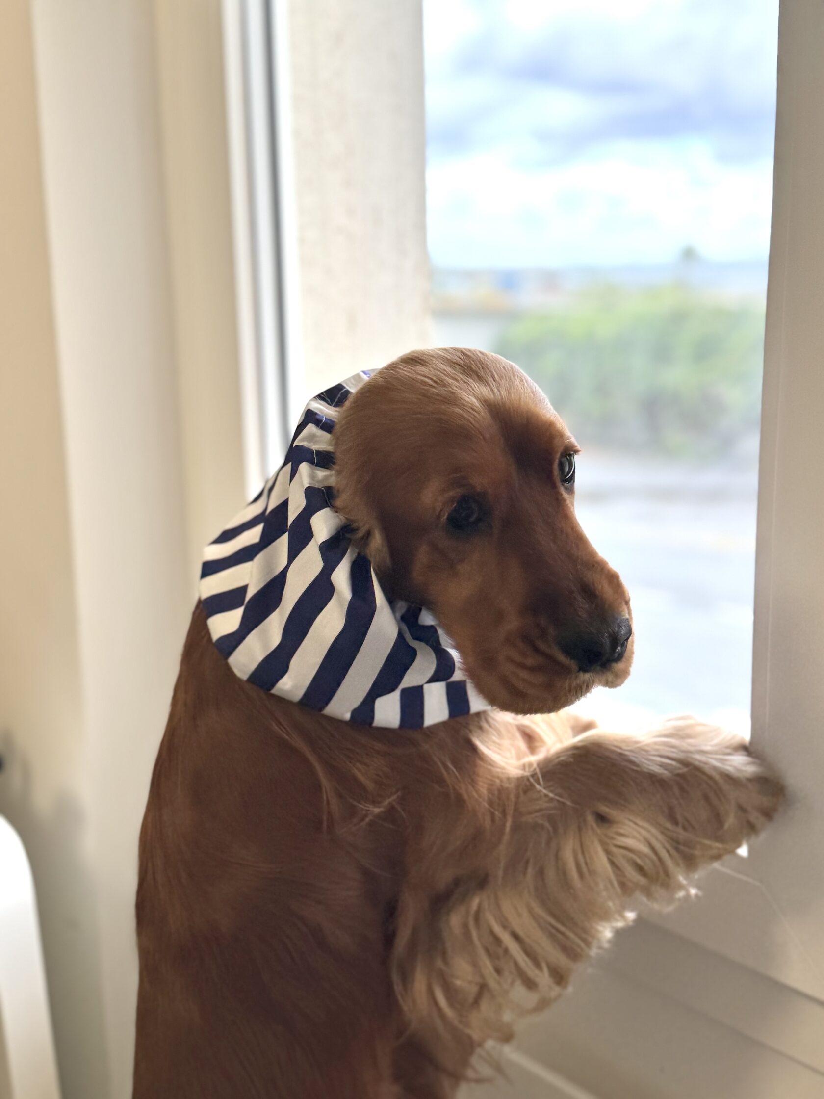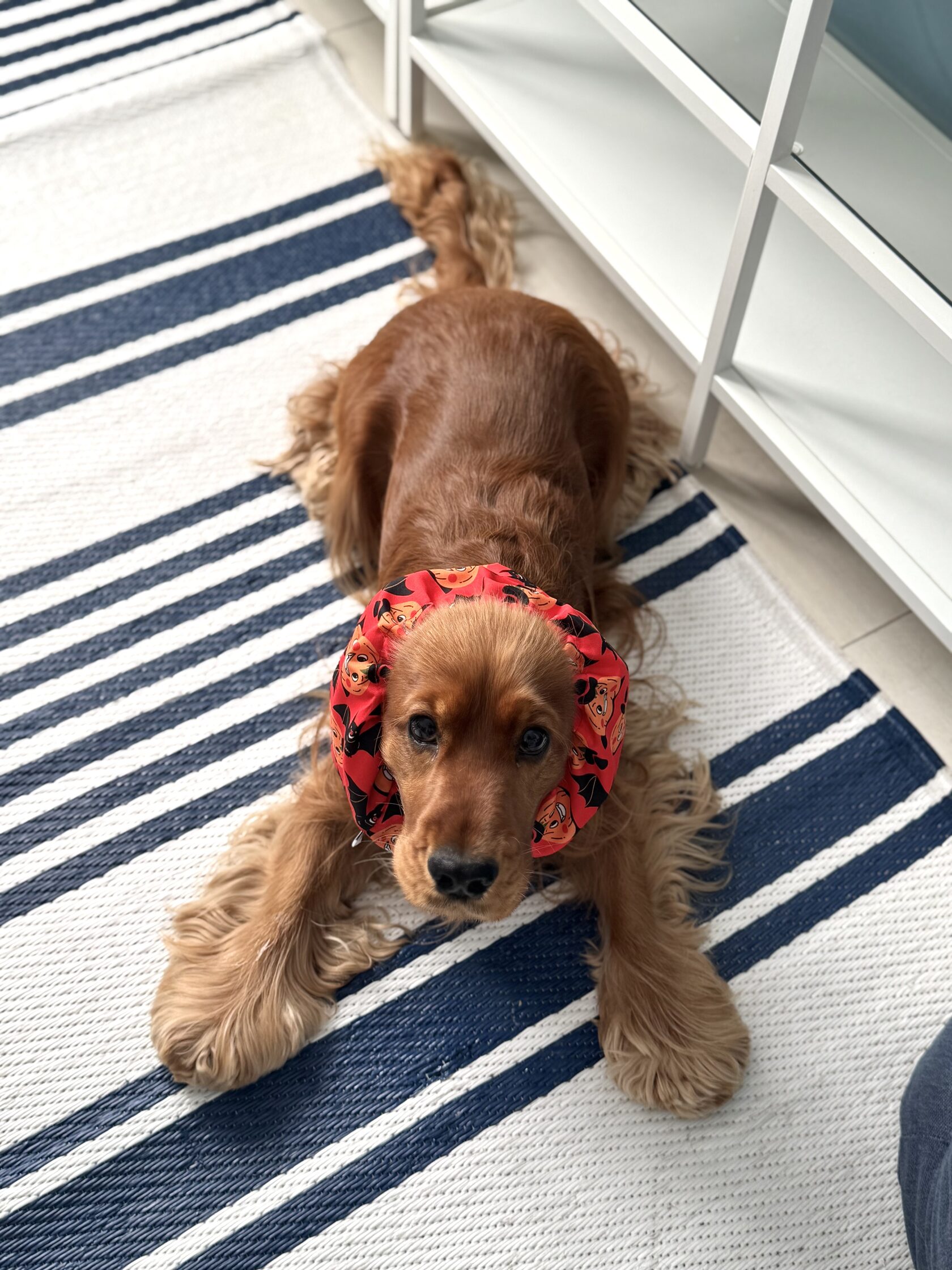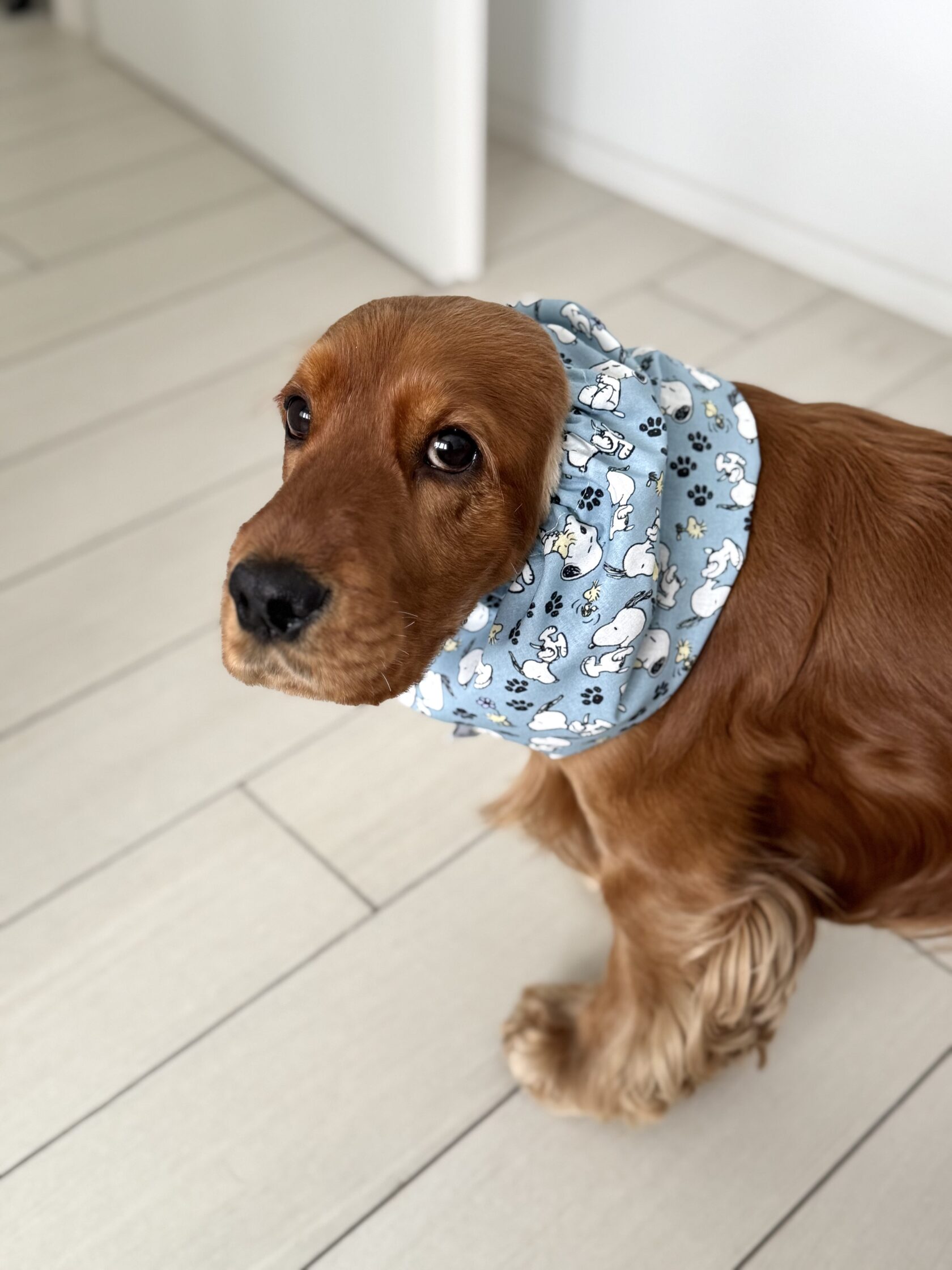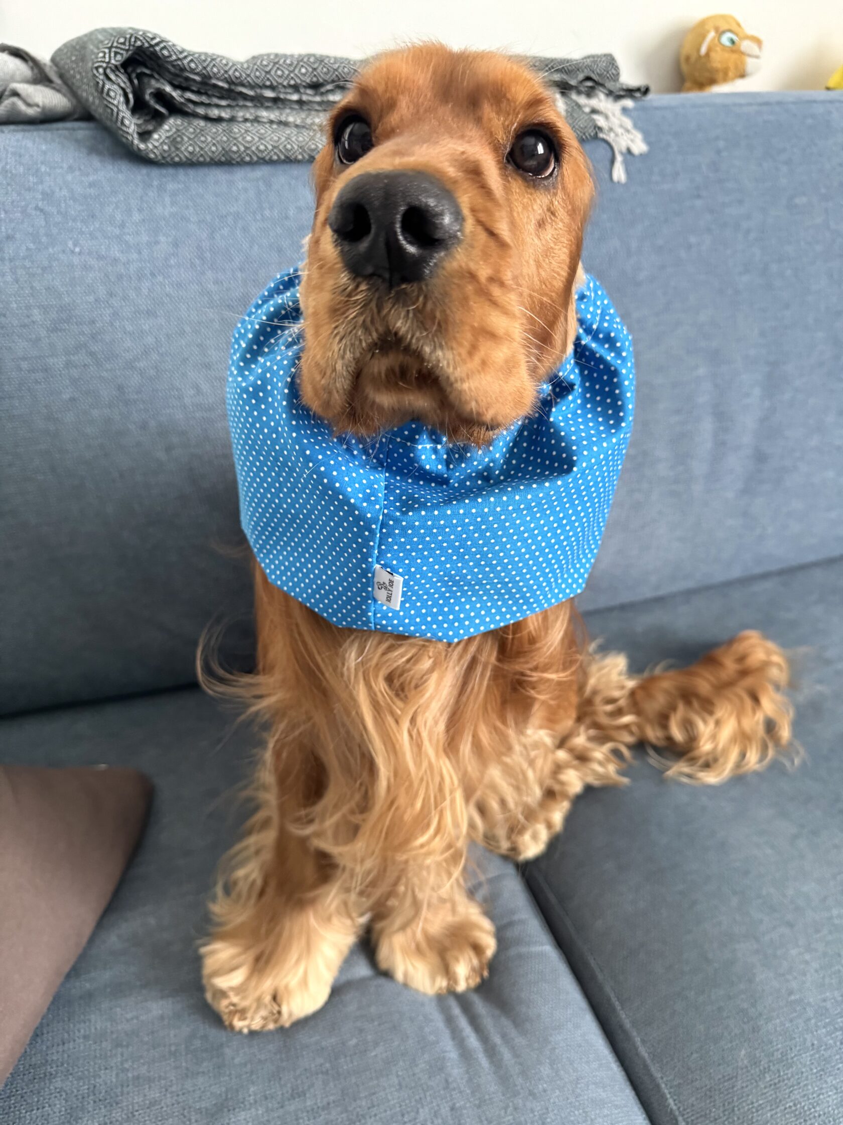 A dog snood is a stylish and practical accessory for our furry friends. These cozy and cute coverings are designed to keep your dog's ears and neck warm, especially in winter. And in summer snoods protect against grass seeds and help keep long ears clean and dry, making them perfect for breeds like Cocker Spaniels, Cavalier King Charles Spaniel, Basset Hounds and some other dogs with long ears.