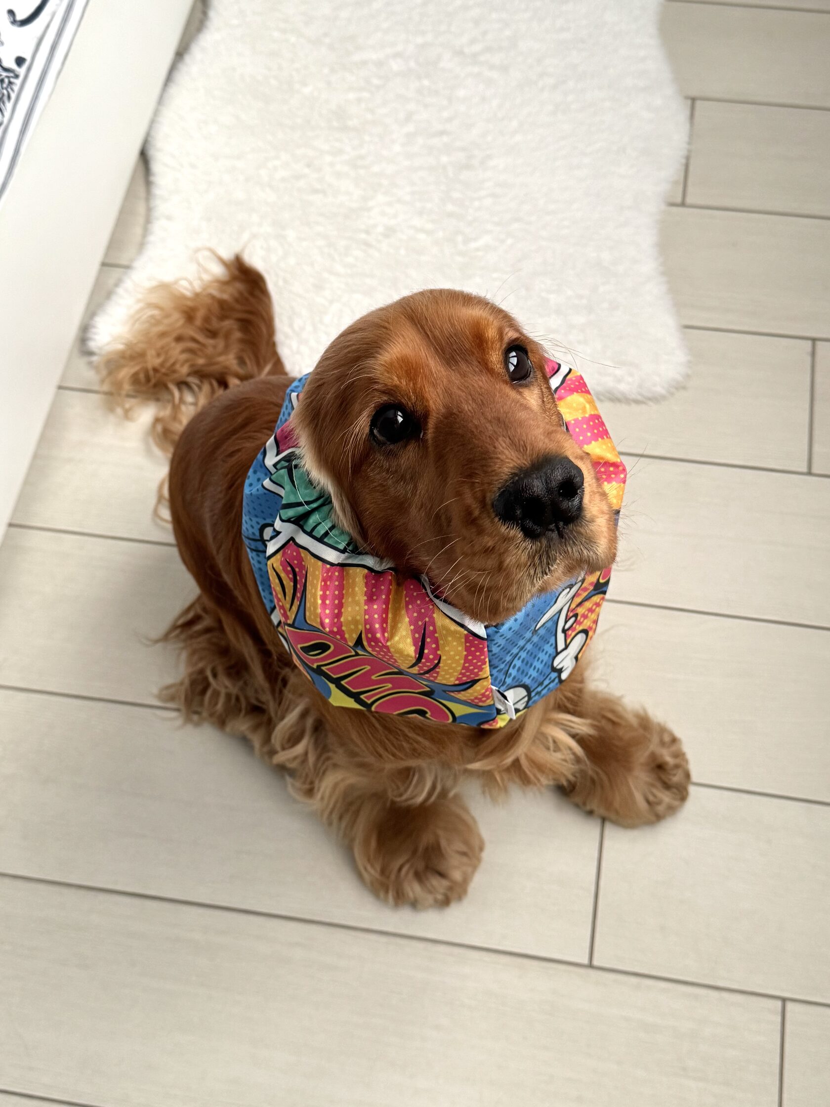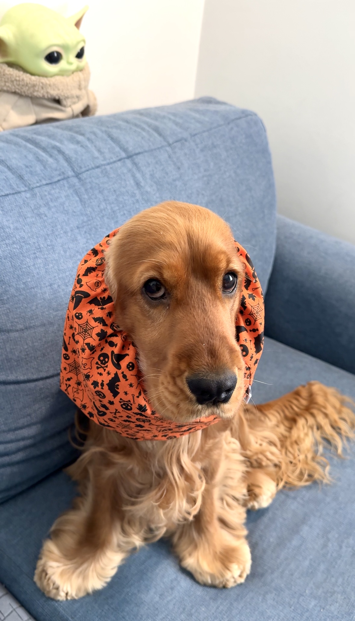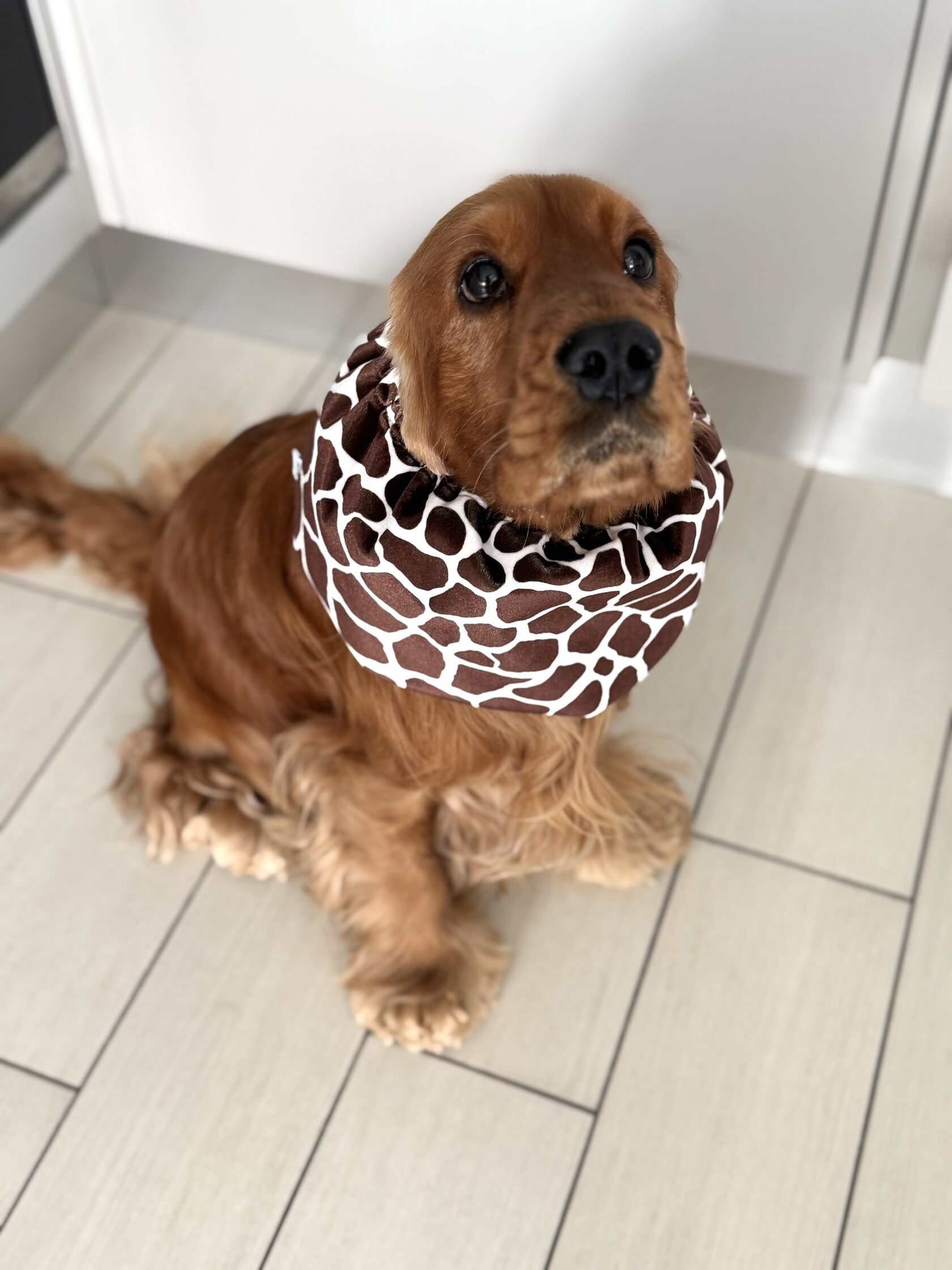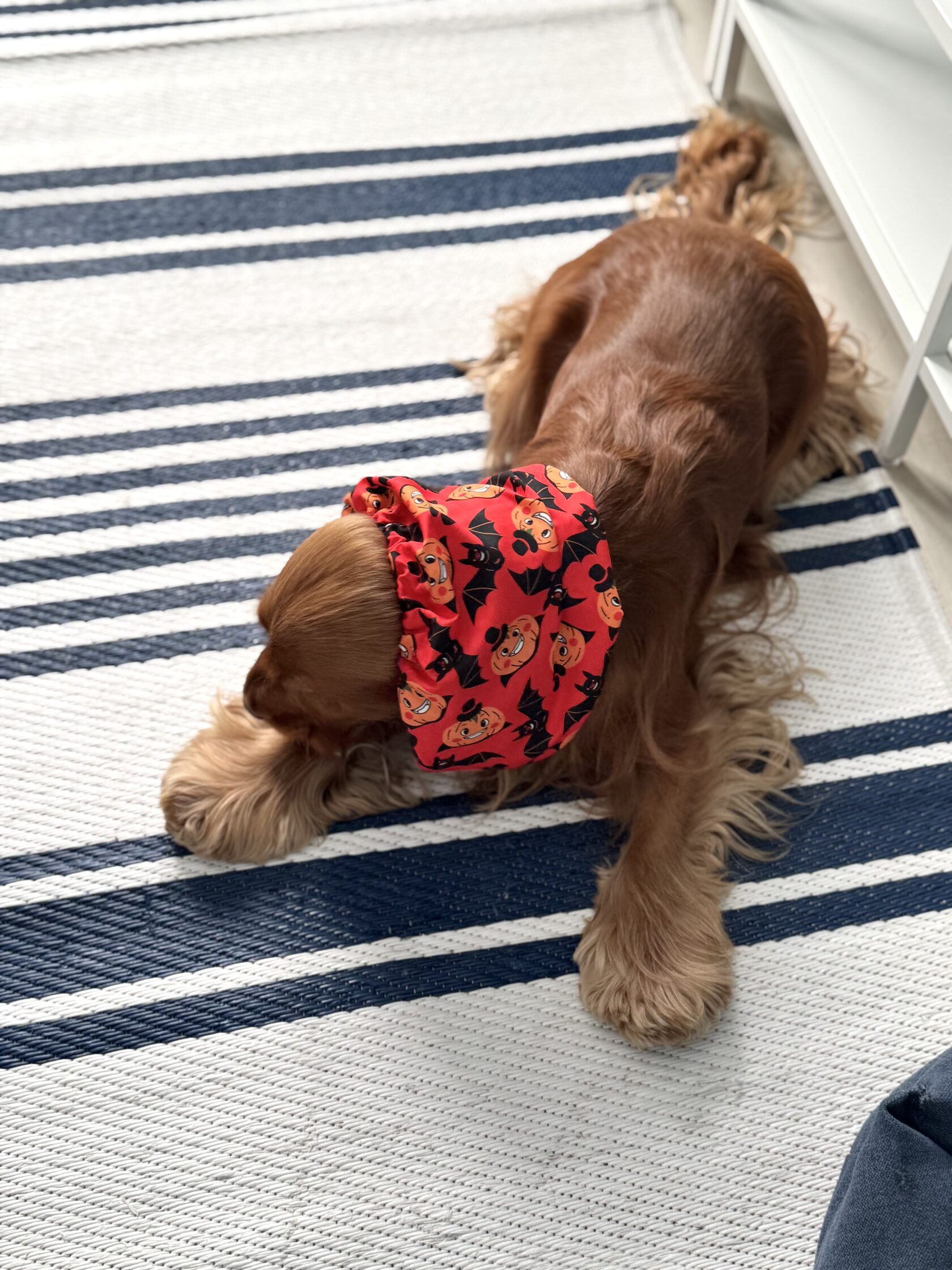 We offer snoods in a variety of colors, patterns, and materials, allowing you to find the perfect one to match your dog's personality!