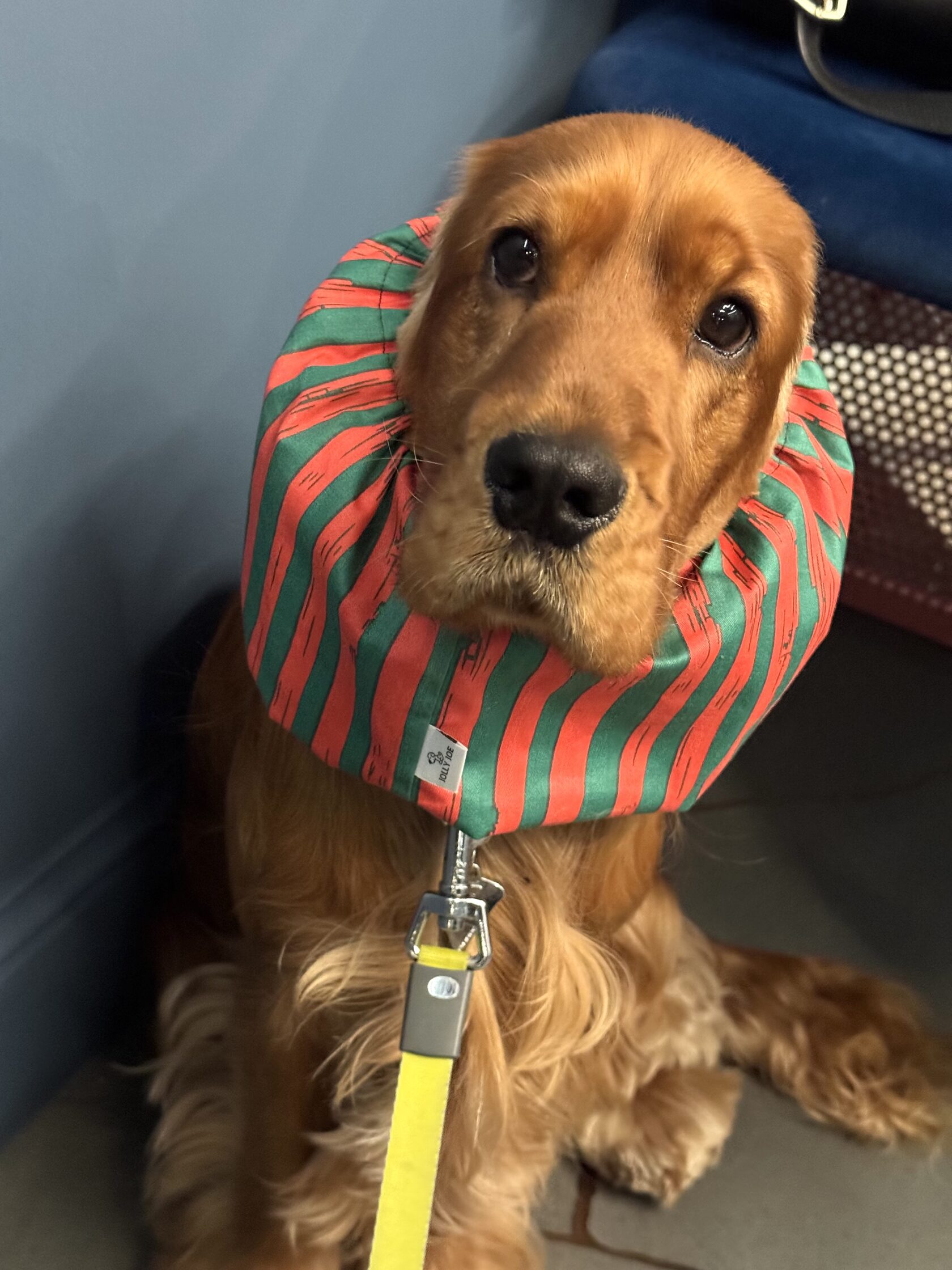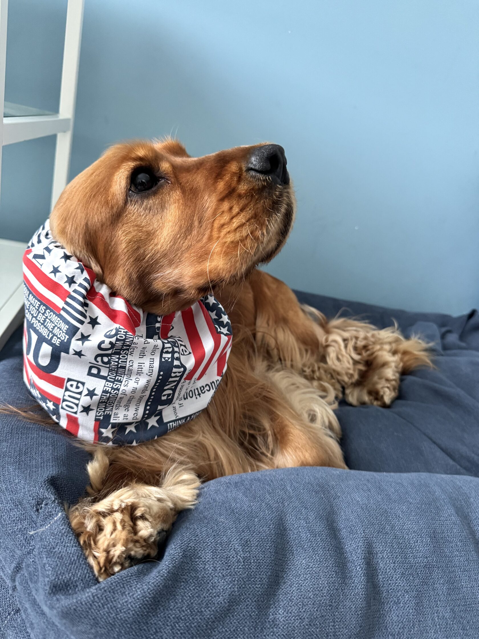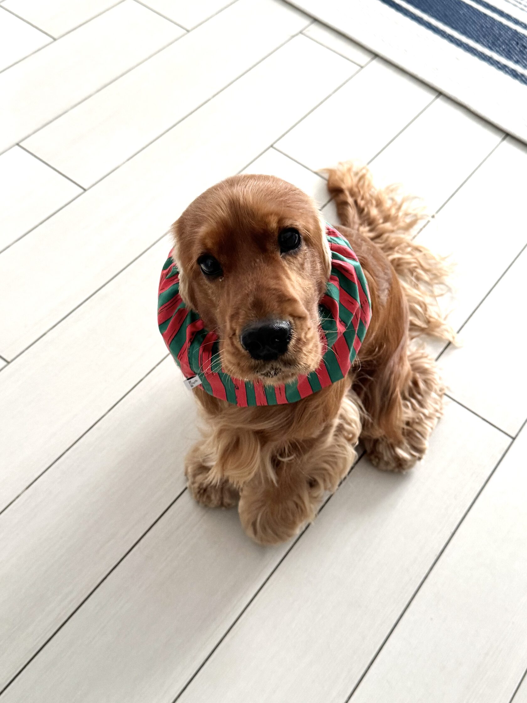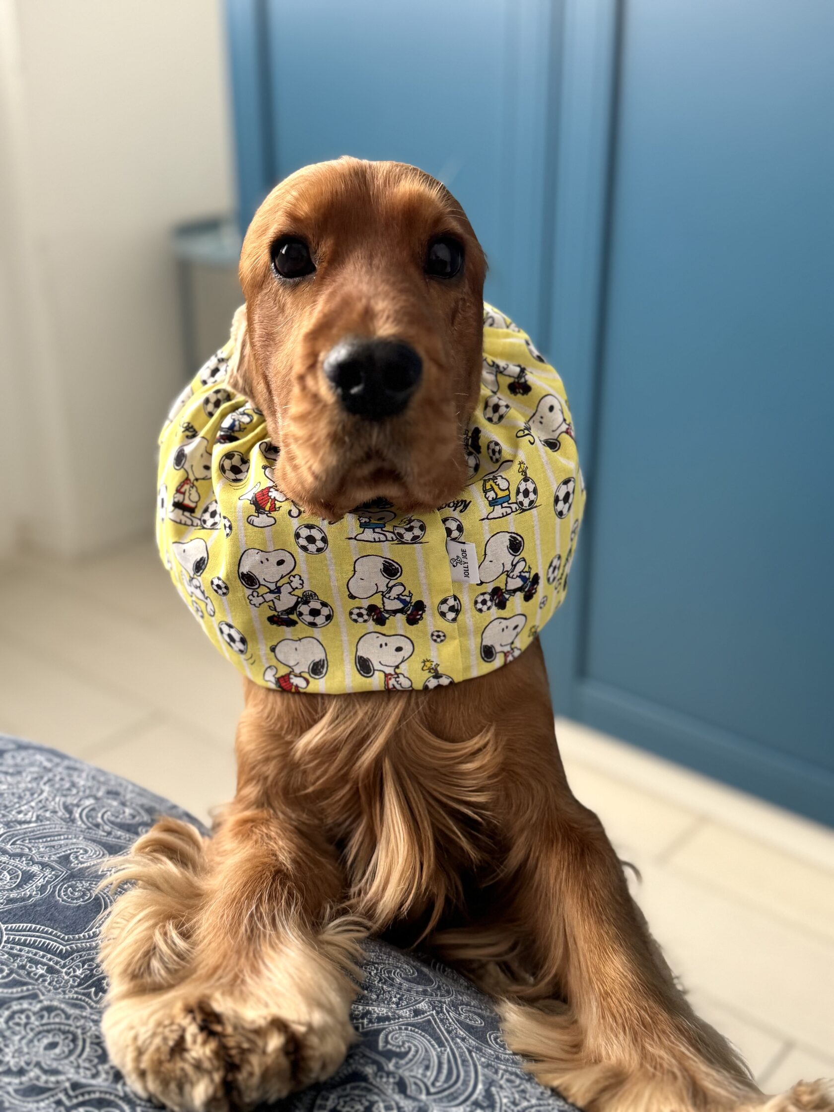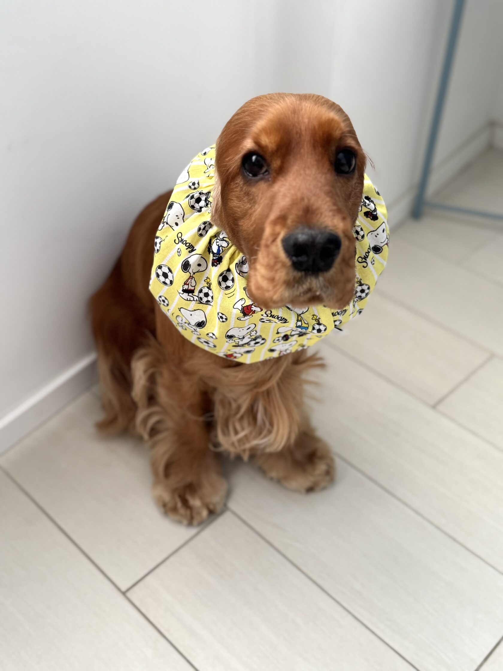 We offer snoods in a variety of colors, patterns, and materials, allowing you to find the perfect one to match your dog's personality!